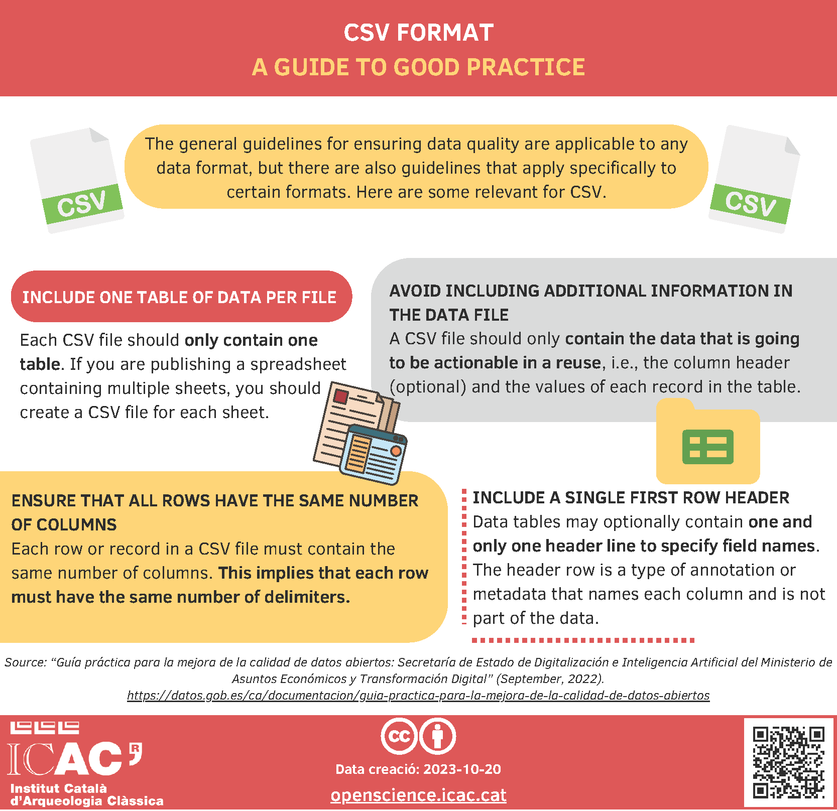 Infografia sobre bones pràctiques per arxius CSV.