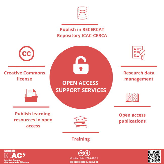 Infographic on suport services on open access at the Catalan Institute of Classical Archaeology (ICAC).
